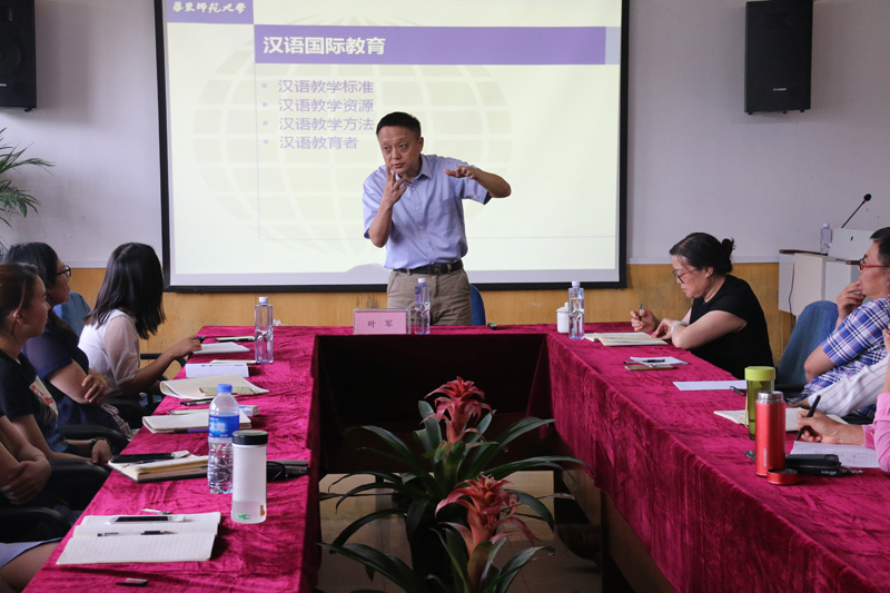 6月11日下午,应明陞m88官方网站地址国际汉学院之邀,华东师范大学叶军教授在国际汉学院三楼会议室作了题为《国际汉语教师教育的机遇与挑战》的学术报告,国际汉学院及文学院相关专业师生共同聆听了此次报告会。报告会由国际汉学院副院长马惠玲教授主持。