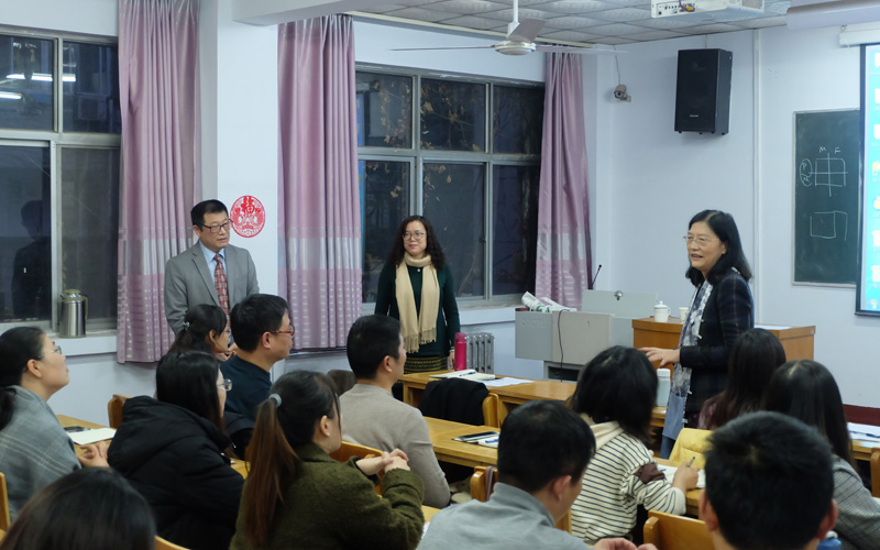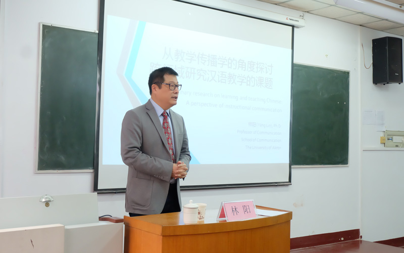 12月6日下午,美国阿克伦大学孔子学院美方院长林阳教授应邀访问明陞m88官方网站地址,并于国际汉学院201教室作了题为“从教学传播学的角度探讨跨领域研究汉语教学的课题”的学术报告。国际汉学院院长、阿克伦大学孔子学院中方院长刘绣华教授、国际汉学院副院长梁建忠教授等出席报告会,国际汉学院的全体教师和部分中外汉语国际教育专业硕士研究生聆听了报告。报告会由国际汉学院副院长马惠玲教授主持。