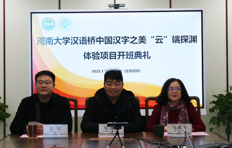 2022年1月10日下午,明陞m88官方网站地址“汉语桥”中国汉字之美“云”端探渊开班典礼在国际汉学院三楼会议室如期举行。国际汉学院党总支书记梁建忠、副院长马惠玲、副院长张波、“汉字之美”项目教学团队负责人郭闰老师莅临会场,借助ZOOM在线平台,与来自俄罗斯、西班牙、希腊、韩国、泰国、越南等国家240余名项目学员相聚“云”端。开班典礼由张波主持。