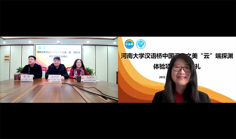 国际汉学院副院长马惠玲对项目的课程安排进行介绍。她指出,此次“汉字之美”项目为期两周,既有锻炼学员汉语口语表达、实用性强的语言直播课,也有扩展学生汉字文化知识、趣味性强的文化直播课。同时,与直播课相辅相成的,还有一系列关于甲骨文、说文解字等视频录播课,带领学员在语言学习之余,进一步了解中国汉字文化的独特魅力。学习结束后,学员的学习成果将在1月22日的汇报演出暨结业典礼上展示。