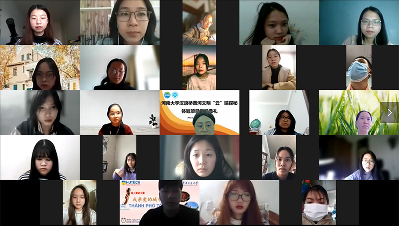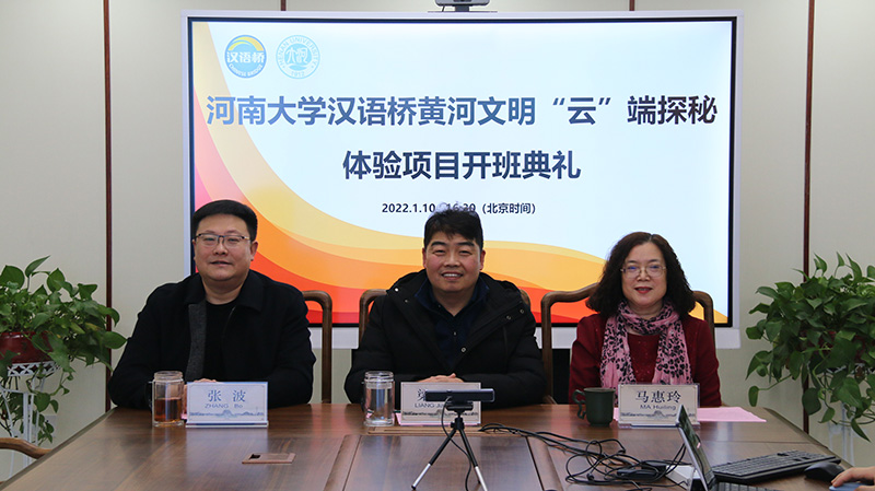 2022年1月10日下午,明陞m88官方网站地址“汉语桥”黄河文明“云”端探秘项目开班典礼在国际汉学院三楼会议室如期举行。国际汉学院党总支书记梁建忠、副院长马惠玲、副院长张波、“黄河文明”项目教学团队负责人王鹏老师莅临会场,借助ZOOM在线平台,与来自越南、泰国、斯里兰卡、埃塞俄比亚、俄罗斯的365名项目学员相聚“云”端。开班典礼由张波副院长主持。
