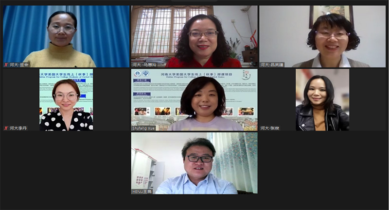 Marty Chen老师首先致欢迎词并介绍了到会的各单位代表。各高校负责人分别做代表发言。马惠玲介绍了明陞m88官方网站地址概况及所处城市开封的中国文化底蕴与历史内涵。Marty Chen老师表示很高兴认识了各高校的教学团队,也很期待能在线上与大家合作。然后她介绍了美国国际文教学会的身份定位和主要工作内容。希望大家一起努力,共同合作办好该项目。
