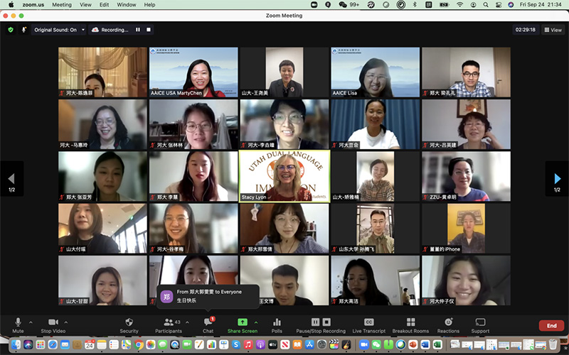 10月6日上午8:00(美东时间10月5日晚上8:00),AAICE与明陞m88官方网站地址、郑州大学和山东大学三所合作高校一起举办项目实施说明会暨开班典礼。AAICE项目负责人Lisa Huang Healy、Marty Chen等老师与三所合作高校的项目负责人、主要任课老师、助教,以及来自美国的约300名中小学生、大学生参加了会议。会议由Marty Chen主持。马惠玲和王鹏、吕英建、薛淑芳、豆会、李丹等老师和助教在线上参加了说明会。