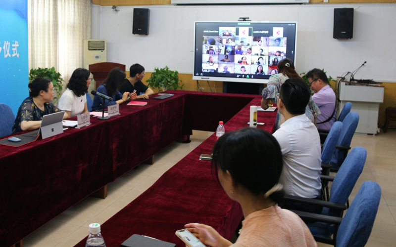 7月2日,明陞m88官方网站地址召开美国中小学生线上授课项目分区分班考试暨项目开幕式。国际汉学院教学副院长马惠玲和李亚辉老师分别用中、英双语主持,来自美国和加拿大的75名不同年龄段的学生参加了考试与开幕式。马惠玲教授和李亚辉老师耐心细致地介绍了课程内容和“体验中国”的具体规划。