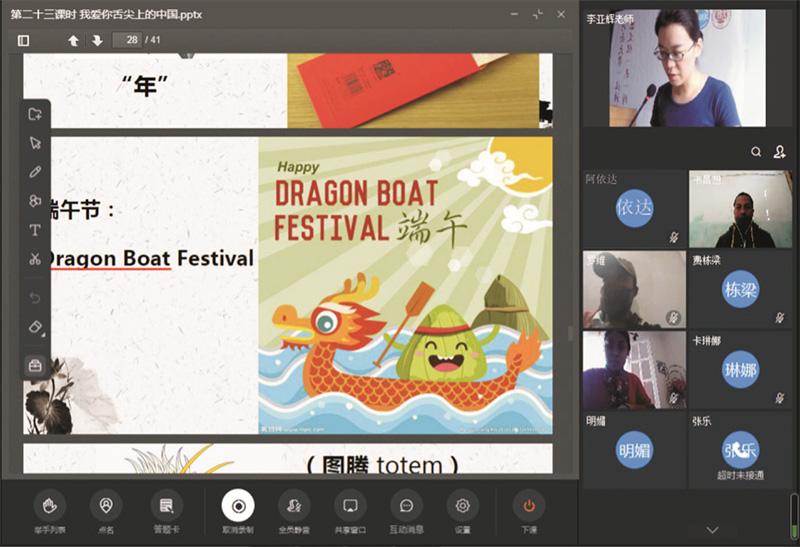 教师为国际学生介绍了我国传统节日——端午节的来历、饮食文化和风俗习惯,招生管理科、生活服务科工作人员为国际学生准备了多样口味的粽子。