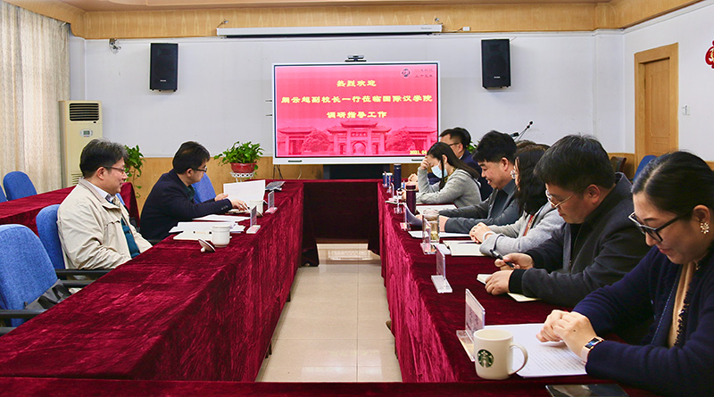 4月8日下午,校党委常委、副校长阚云超在教务处副处长朱显峰陪同下到国际汉学院调研指导工作。国际汉学院领导班子成员、学院中层及教研室主任参加会议,会议由国际汉学院党总支书记梁建忠主持。