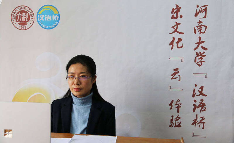 汉语课程由国际汉学院专任汉语教师刘瑛、赵蕾、李荷蓉、刘新春四位教师负责。为确保良好的教学效果和更好的云端体验,并配合宋文化的教学,四位教师精心编写了相关的汉语教材,把汉语教学与宋文化的教学有机地结合起来,突出了此次宋文化“云”体验项目的特色。在汉语教学中融入了开封建筑与美食、北宋官瓷、汴绣、清明上河园、宋词等有关内容,学员们在学习汉语的同时也了解了相关的文化知识。