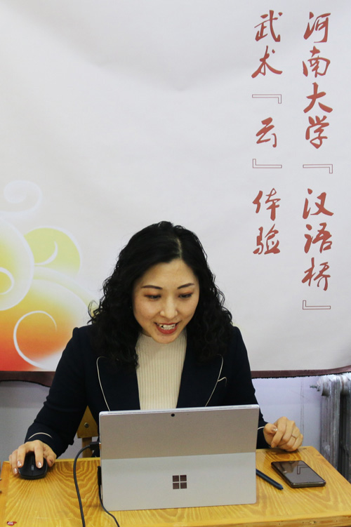 武术“云”体验项目学员分别来自吉尔吉斯斯坦、泰国、希腊三个国家,根据学员汉语水平高低编入四个班级,由国际汉学院专任汉语教师李康、崔晓飞、吴琼、乔玉雪进行授课。为确保最佳的教学效果和云端体验,并配合少林拳和太极拳的教学,四位教师精心编写了《武术汉语》教材,把汉语教学与武术教学有机地结合起来,突出了此次武术“云”体验项目的特色。
