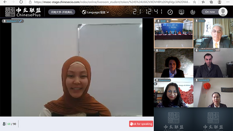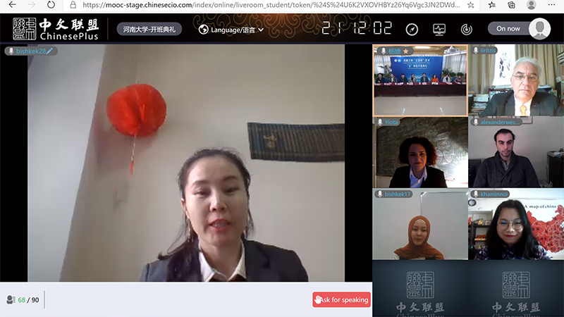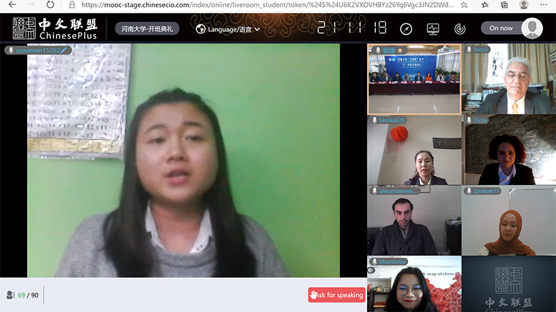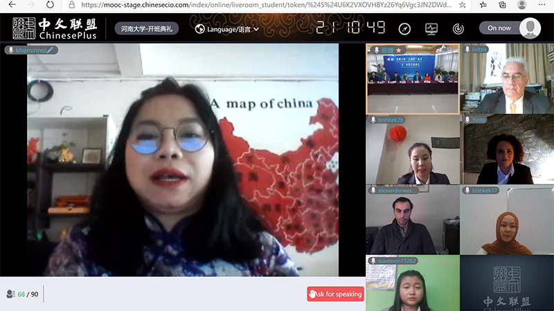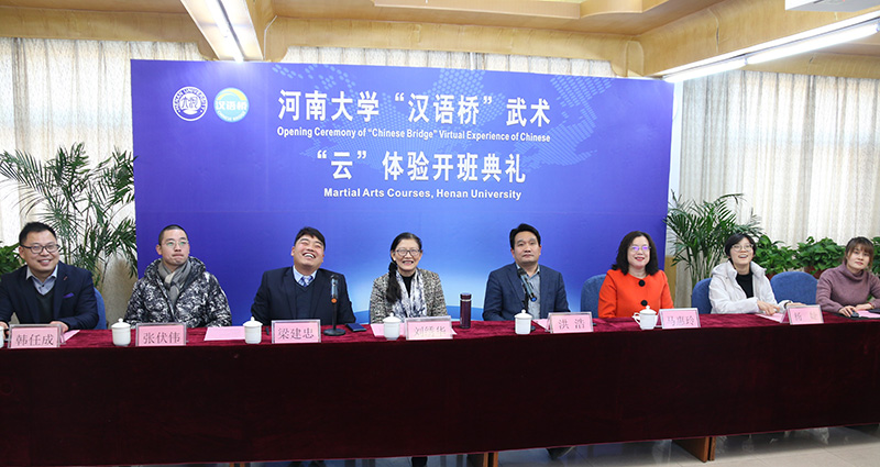 2021年1月18日,由教育部中外语言交流合作中心主办、明陞m88官方网站地址承办的汉语桥武术"云"体验项目开班典礼在国际汉学院会议室如期举行。国际汉学院党总支书记梁建忠、武术学院院长洪浩、国际汉学院院长刘绣华、副院长马惠玲、少林拳课程教师张伏伟、国际汉学院招生管理及教务部门工作人员,通过中文联盟直播平台与来自吉尔吉斯斯坦民族大学、泰国清莱皇家大学和希腊爱琴大学的百余名师生云端相聚,开班典礼由梁建忠主持。