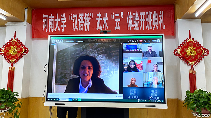 国际汉学院副院长马惠玲向云端师生介绍了项目的课程安排,此次武术"云"体验项目为期12天,既有提高学生汉语口语表达及武术相关知识的原创《武术汉语》直播课,也有亲身体验、互动性强、由武术学院老师讲授的《少林拳》和《太极拳》直播课程。此外,学院还制作了《"云"游少林寺》《"云"游陈家沟》视频课程,使大家足不出户就可以赏美景、学文化、看功夫,了解更多中华武术知识;《少林拳教学视频》《太极拳教学视频》有助于学员课后的进一步巩固和练习。学习结束后,学员的学习成果将在1月29日的汇报演出暨结业典礼上展示。