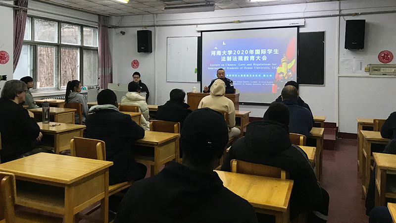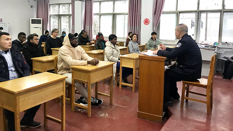 12月31日下午,开封市公安局出入境管理支队来我院开展国际学生法制法规教育讲座活动,支队队长陈大炜为留校国际学生做了专题讲座。
