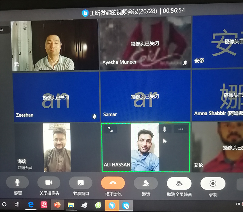 ZEESHAN AHMAD(何楠)表示虽然疫情发生之前我已经回国,但学校的领导和老师们非常关心我们的身体状况。当时留校的同学告诉我,他们得到了老师们细心的照顾和全面的帮助。老师们为每个学生的健康操心,把同学的安全和健康放在第一位,我深深的感受到老师们像对待家人一样对待我们。同时,我要感谢中国政府,巴基斯坦疫情发生后,中国是第一个援助巴基斯坦的国家,这正体现了习近平主席所说的“患难见真情”。我在中国生活学习了三年,对这种深厚的情谊深有体会,我相信中巴友谊一定会越来越紧密。