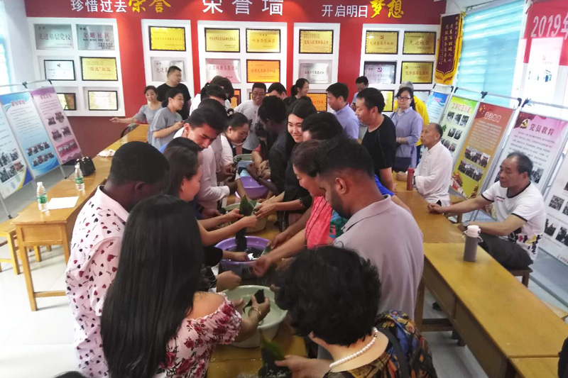 2019年6月6日,来自俄罗斯、泰国、巴基斯坦、吉尔吉斯斯坦、委内瑞拉、土库曼斯坦、加纳、坦桑尼亚等国的19名明陞m88官方网站地址参加了在开封市城乡一体化示范区城西办事处康乐社区开展的2019年“弘扬端午文化,加强中外交流”主题活动。