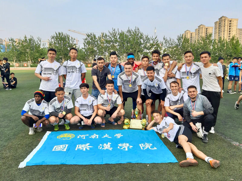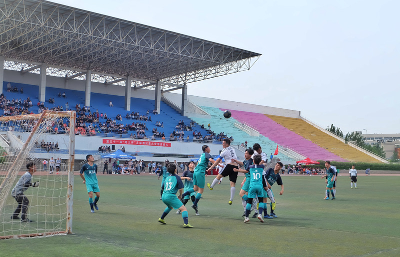 2019年5月9日下午2:30,第31届“河大杯”足球赛超级联赛决赛在金明校区志义体育场正式打响,比赛双方为身穿白色队服的国际汉学院足球队和身穿墨绿色队服的经济学院足球队。