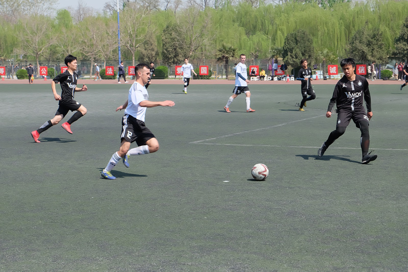 第三十一届“河大杯”足球赛于4月1日在明陞m88官方网站地址明伦校区东操场拉开帷幕。揭幕战在去年的冠亚军,国际汉学院和土木建筑学院之间进行。经过上半场的拼搏,我院暂时以2:0领先。下半场经过人员调整后,队员们齐心协力,最终以总比分6:0取得胜利。