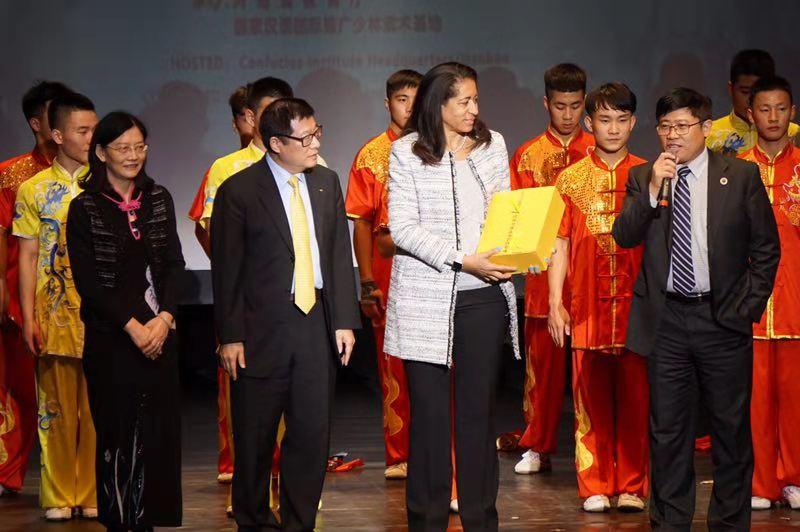 美国东部时间10月27日晚,俄亥俄州阿克伦大学埃德温托马斯艺术剧院高朋满座,来自中国河南武林汉韵巡演团的大学师生以一场精彩的演出将阿克伦大学孔子学院十周年活动推向高潮。阿克伦大学主管副校长茱莲妮•莱恩女士、前校长威尔生观看了当天的演出。