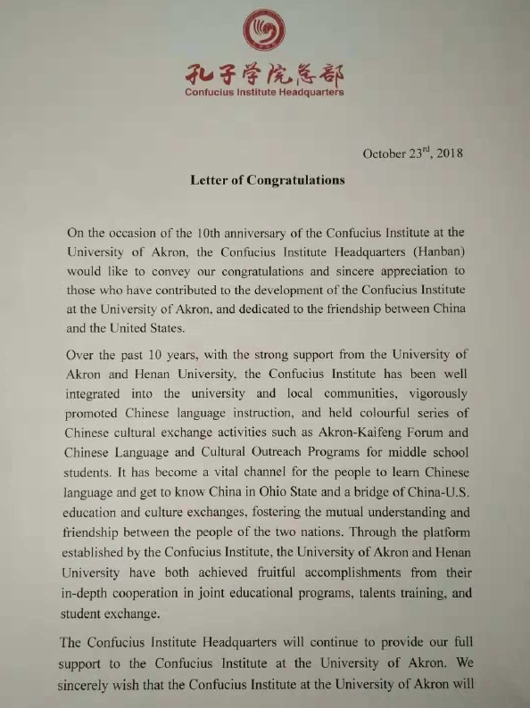 “除了在推广汉语国际交流上,孔院大有作为,在中美青年交流,增进两国经贸、教育、文化交流与合作中,也在发挥着越来越重要的作用。”阿克伦大学孔子学院外方院长林阳教授说,目前,阿克伦大学不仅与明陞m88官方网站地址的合作进一步加深,在两校学科间、学者间对接,助推明陞m88官方网站地址“一流学科”建设;在孔院的推动下,还促成了阿克伦大学与河南另外2所高校签署了合作协议。