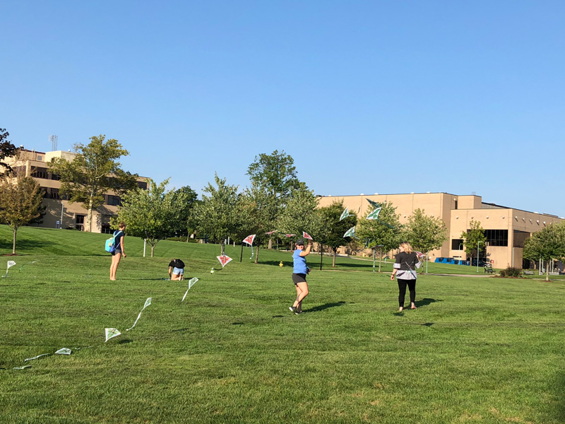 风筝展示活动在阿克伦大学Buchtel Common 绿茵场举行,阿克伦大学孔子学院提供了300只风格迥异的民间手工艺风筝。风筝在蓝天上翩翩起舞,吸引了众多师生驻足。阿克伦大学孔子学院中方院长刘绣华教授、郭闰老师热情地给前来观看的师生们讲述中国古代风筝的发明故事、现代民间制作工艺、放风筝的习俗、不同图案的寓意及放风筝的技巧等。在孔子学院研究生助理李佳潞同学和中国明陞m88官方网站地址者愿者们认真的演示和指导下,前来参与的阿克伦大学师生们很快就掌握了放风筝的技巧,不一会儿,天空中就高高飞起了巨龙、燕子、熊猫、锦鲤、蝴蝶等各种图案的风筝。师生们在绿茵场上兴高采烈地奔跑着,还不时地拿出手机给自己放飞的风筝拍照。