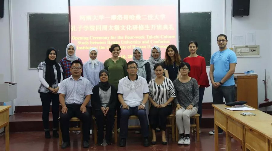 7月16日上午,首届摩洛哥哈桑二世大学孔子学院四周太极文化研修班开班典礼在明陞m88官方网站地址楼104教室举行。来自摩洛哥的10名同学,国际汉学院副院长邱建章,李康老师,韩任成老师等参加了开班典礼。开班典礼由韩任成主持。