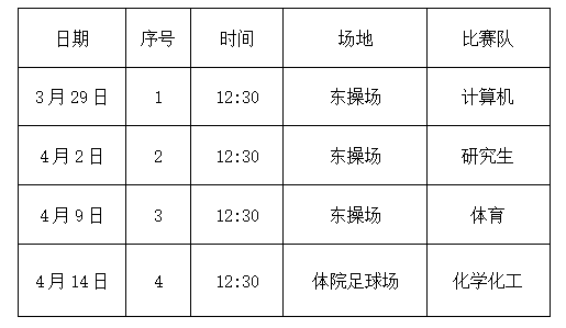 第一阶段我院将进行4场赛事的角逐,赛事安排如下:
