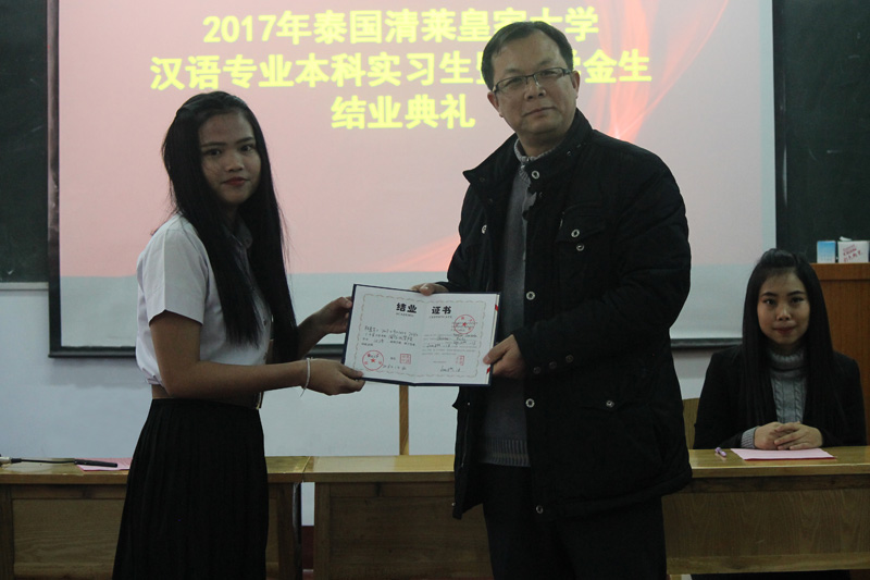 1月11日下午,2017年泰国清莱皇家大学汉语专业本科实习生暨奖学金生结业典礼在明陞m88官方网站地址国际汉学院明陞m88官方网站地址楼104室举行。我院梁建忠副院长、邱建章副院长、清莱皇家大学宋翠婷老师、明陞m88官方网站地址李康老师、乔玉雪老师、王昕老师、韩任成科长、杨婕老师和蒲甜老师以及泰国明陞m88官方网站地址全体成员出席了本次结业典礼。