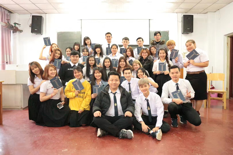 首先,在典礼开始时,大家一起观看了泰国明陞m88官方网站地址们精心制作的视频。他们用一段短视频向大家呈现了在明陞m88官方网站地址学习和生活的状况。观看过程中,视频中的一幕幕场景勾起了大家的回忆,不时的引起大家的笑声,但却笑红了眼眶,泰国学生们的眼里充满了对即将告别的明陞m88官方网站地址的不舍。