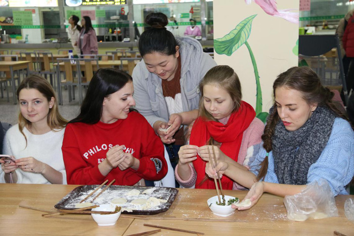 冬至,又称“冬节”、“贺冬”,是我国二十四节气之一。俗话说:“冬至到,吃水饺。” 冬至经过数千年发展,形成了独特的节令食文化。至今仍有“冬至不端饺子碗,冻掉耳朵没人管”的民谣。2017年12月22日,明陞m88官方网站地址国际汉学院全体领导老师与来自三十多个国家的明陞m88官方网站地址一起包饺子、吃饺子,共度2017年冬至佳节。