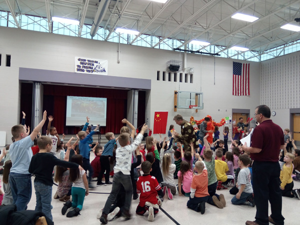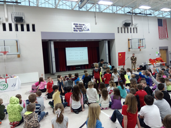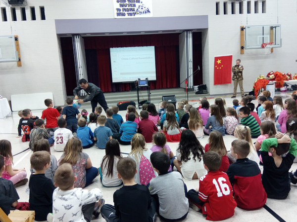 西北小学有学生三百余人,为了让孩子们都有机会亲身参加活动,直接体验中国新年文化,我们把学生按年级分成三个组,每组一个小时轮流参加活动。孩子们都非常兴奋,积极踊跃回答问题和参与表演活动,现场气氛十分活跃,欢声笑语不断。表演结束后,孩子们列队参观文化展台,个个惊讶不已。很多孩子恋恋不舍,用自己刚刚学到的中文说“谢谢”、“再见”。