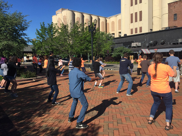 经过长期精心准备,孔院当地中学生夏令营“猴年中国之旅”于2016年6月13日早上准时开幕。为扩大影响,活动场地先后选在了阿克伦市著名的地标 建筑贵格火车站、阿克伦大学的橄榄球体育中心、学生活动中心、体育馆等,并选在校长楼前练习太极,统一着装到当地知名的动物园——克利夫兰市动物园参观。