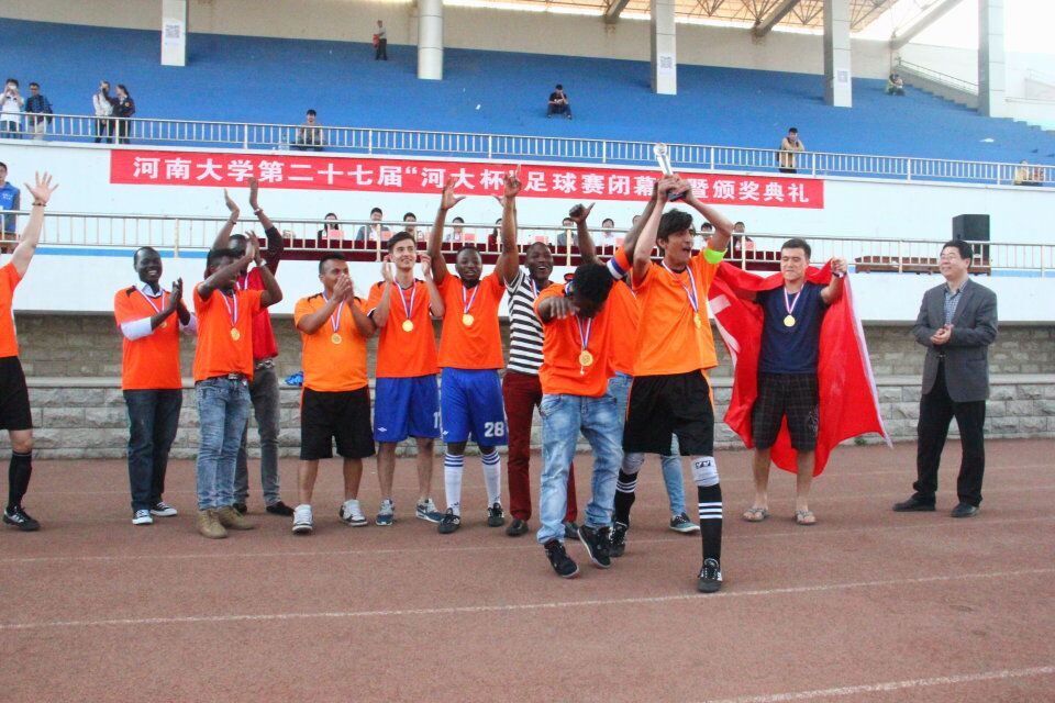 明陞m88官方网站地址第二十七届“河大杯”足球赛经过18天、43场的激烈角逐,于2015年4月25日下午举行了闭幕式暨颁奖典礼,我院荣获冠军。我院来自世界各地的明陞m88官方网站地址积极参与,达到了以球会友,以球会师,增进各个院系师生之间、同学之间沟通交流的目的,展现了我院明陞m88官方网站地址积极向上热爱运动的精神风貌和顽强拼搏的体育精神。