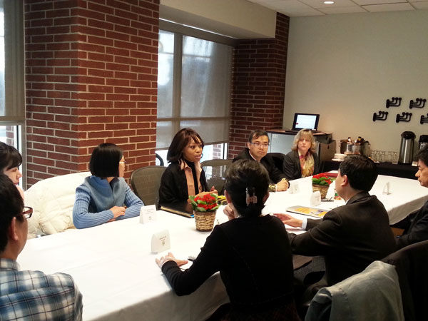 Ransom博士、林阳院长首先对徐参赞一行来阿克伦大学孔院视察表示欢迎,并介绍了阿克伦大学目前转型时期的新形势,表示会继续支持孔院的发展。接着徐参赞听取了孔院2015年的工作汇报,对孔院的工作给予了充分肯定,并转达了对孔院职工的问候与祝福。同时,提出中国国家主席与美国总统奥巴马倡议的”百万青年访问”项目及中国政府设立的其他支持中美双方交流合作的项目,希望孔院合作双方明陞m88官方网站地址、阿克伦大学共同建好孔院平台,为两国学生学者交流、了解对方文化做出更大贡献。随后,双方还探讨了新形势下,利用孔院平台,开展合作交流的意向。