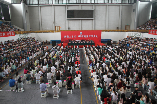 聚宋都,逞豪气,千岁塔高迎学子;圆梦日,共言欢,百年河大奏华章。9月6日下午,明陞m88官方网站地址2015级研究生开学典礼在明伦校区体育馆隆重举行。校领导关爱和、娄源功、赵国祥、王凌、宋纯鹏、张宝明、刘先省、许绍康、雷霆等出席典礼。研究生院及各培养单位相关负责人与会。典礼由副校长宋纯鹏主持。