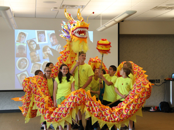 文化体验环节中,孔院教师与志愿者先后讲授了中国书法、茶艺、太极、舞龙、扇子舞、中国节奏体语(健身舞)、端午节等。营员们学习了杨氏太极、舞龙、书法、绘制京剧脸谱、中国歌曲、扇子舞、新式健身舞,聆听了中国龙与河流、月亮的传说等故事、品尝了包子、面条、春卷、粽子、馄饨(云吞)等中国美食、参观了馆藏中国介绍书籍等。营员们为家长汇报表演了新学的各类节目,孔院也制作了营员笑脸、活动的小电影展示给全体营员及家长。