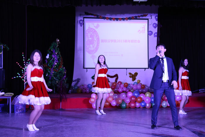 12月30日下午三点,国际汉学院的全体师生在明陞m88官方网站地址教职工活动中心举行了2015新年联欢会。在联欢会正式开始前,由国际汉学院李卫国院长致新年贺词。在致辞中,他首先向明陞m88官方网站地址介绍了汉语“元旦“一词的意义,接下来回顾了在过去的一年中,国际汉学院所取得的成绩和突破,最后向大家致以新年的祝福并表达了他的希望。他说,国际汉学院就是一个温馨和谐的国际大家庭,明陞m88官方网站地址就是各国明陞m88官方网站地址在中国的幸福家园,希望明陞m88官方网站地址们能在明陞m88官方网站地址这个大家庭中彼此尊重、共荣共生。