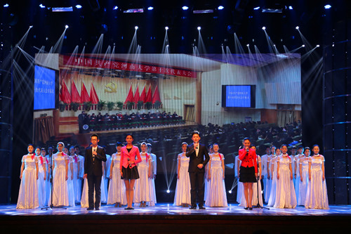 一首《神州共举杯》在舞台上流淌开来,屏幕上河大的故事在不断上演。奠定明陞m88官方网站地址改革发展基础,为恢复校名奔走呼号的老校长李润田;虽家境贫寒却自学成才,用五十年如一日的辛勤和奉献谱就奋斗赞歌的博士生导师佟培基;岁月的流逝抹不去七十载的陪伴,用从容笑看人生百态的老教授黄魁吾。泱泱河大,不灭的是一代代河大人的坚守和奋斗;煌煌百年,我们必将开拓新世纪的辉煌。