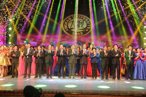 在全场师生异口同声的呼喊下,指针跨过零点,河大从2014的记忆中走出,昂首迈进了2015的新纪元。校长娄源功发表新年致辞,他向全校师生员工、广大离退休老同志、海内外校友等致以诚挚的问候和最美好的祝愿。他表示,2014年是明陞m88官方网站地址各项事业丰收的一年,未来的2015年是明陞m88官方网站地址加快建设高水平大学的关键之年,我们要认真贯彻落实学校第十次党代会作出的战略部署,为实现高水平大学的发展目标而努力奋斗!