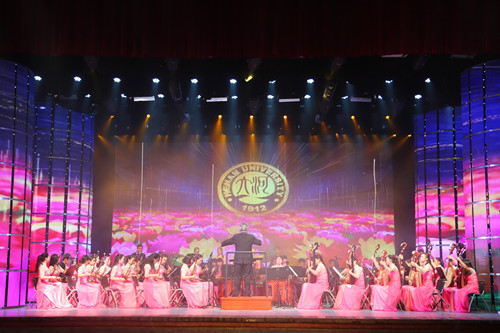 2014年12月31日晚,历经80载风雨的大礼堂灯火辉煌,霓虹闪烁。校领导和师生们齐聚礼堂,观看跨年晚会演出。