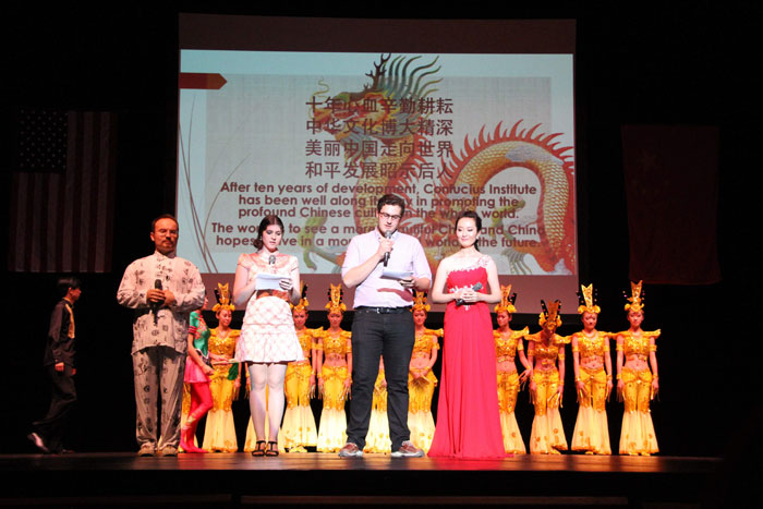 本届“中国周”的主题为“Global Connections. Global Opportunities”。为了加深与当地文化活动的联系,本次“中国周”文化活动与阿克伦每年一度的“马拉松”大赛相结合,26日正式拉开了筹备已久的“中国周”文化活动的帷幕。在John S. Knight 中心,当地市民细品茗茶、揣摩太极,为第二天的“马拉松”大赛做最后的准备工作。27日的Kids Fun Run更是火爆登场,孔院展示的舞龙和熊猫大大提高了孩子们的参与积极性,共有1200多个孩子参与比赛之中,加上父母等超过2500人次参与了比赛活动。孔院的活动受到活动组织委员会的极大赞誉。27日晚上,我们孔院有幸请到加拿大的Orchid Ensemble在Guzzetta Hall Recital Hall给大家呈上一场盛大的音乐盛会,也在历史的长河中窥见犹太人在开封的历时变迁。
