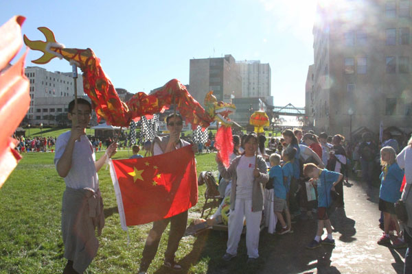 27日,参加国际马拉松比赛,在市中心意大利广场、运河公园展示中国文化。文森特、五月高中也派志愿者参加。在广场,美国孩子争先抢要舞龙的支杆、龙珠,一大一小两条龙戏耍奔跑;大熊猫与其它的吉祥物一起欢乐;现场主持人在大广播里反复祝福“孔院生日快乐”。小龙舞者还参加了趣味跑。设在趣味跑马拉松终点的两个展台,开展了“用筷子夹糖果”、“起中文名”等,大人小孩排成长队参与,成了最吸引人的展位。活动融入当地社区,吸引了成千上万的观众。在当地从来没见过一下出来这么多人,这么多孩子。