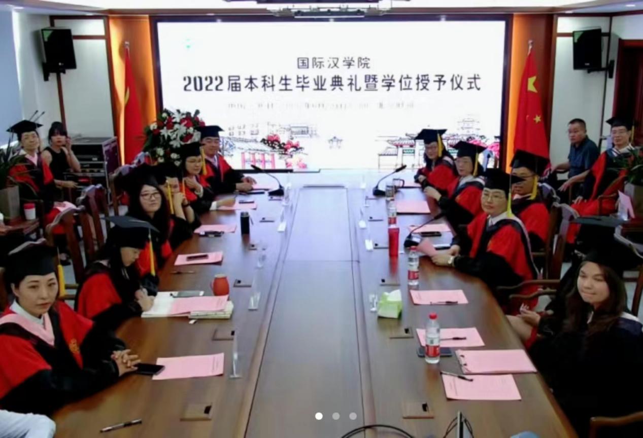 志存高远方能登高望远,胸怀天下才可大展宏图。6月23日下午15:00,国际汉学院2022届本科生毕业典礼暨学位授予仪式以线上线下相结合的方式在国际汉学院三楼会议室举行。