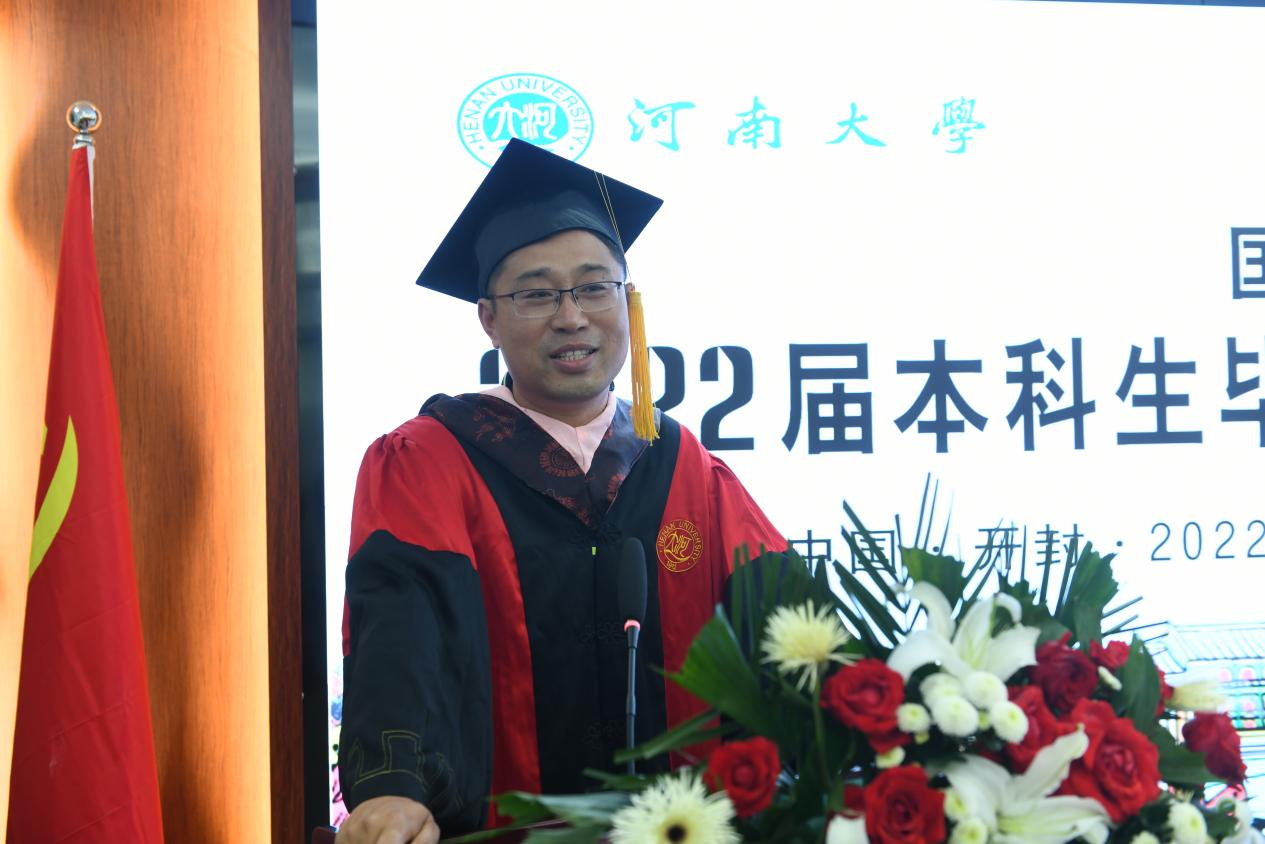国际汉学院党总支书记梁建忠、院长刘绣华、党总支副书记王林丽、副院长马惠玲、副院长张波,2022届本科毕业生班主任乔玉雪、刘新春,学院全体在岗教职工、在校学生代表和来自哈萨克斯坦、俄罗斯、塔吉克斯坦、委内瑞拉、巴基斯坦、泰国、越南和老挝等国家的2022届本科毕业生共同参加了典礼。毕业典礼由梁建忠主持。