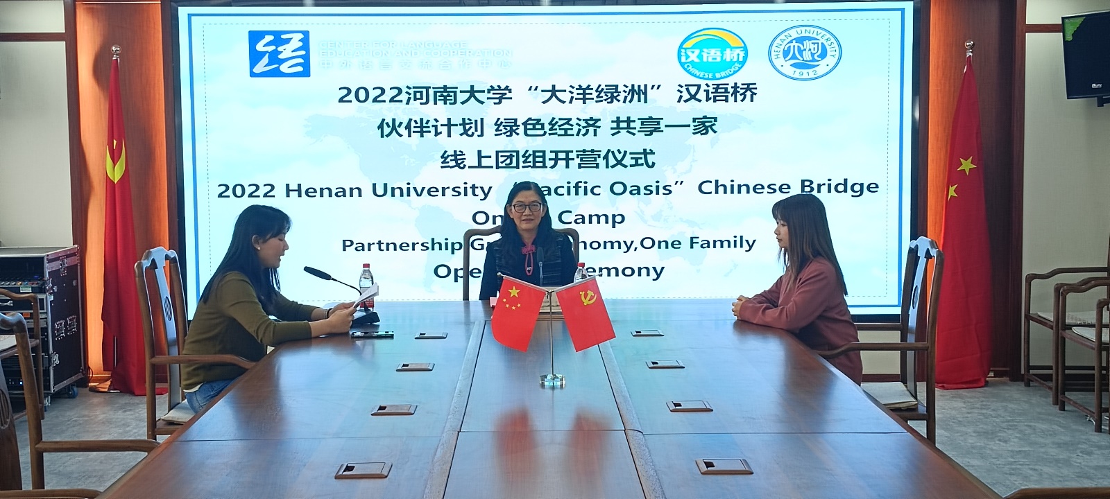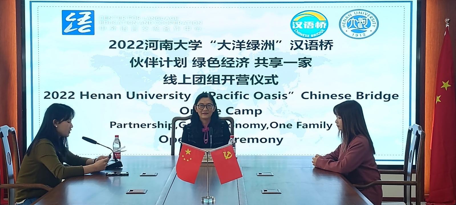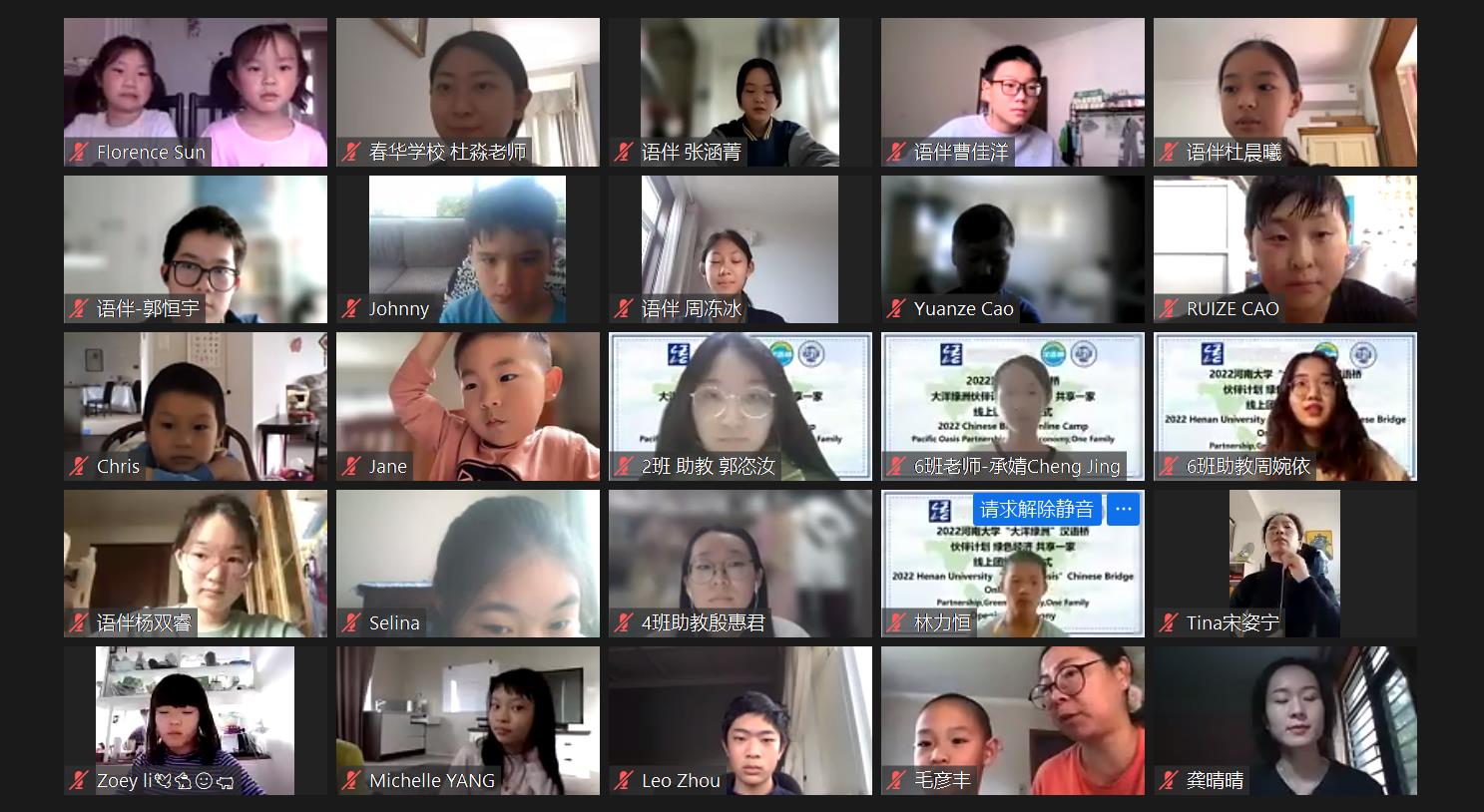 北京时间11月19日上午 11点,由教育部中外语言交流合作中心主办,明陞m88官方网站地址承办的2022年“汉语桥”线上团组交流项目“中澳新共庆 50 年友谊:伙伴计划 绿色经济 共享一家”开营仪式在线上如期举行。澳大利亚河南同乡会、新西兰奥克兰国际艺文学校和中国郑州郑东新区春华学校作为合作单位,共同开启本期“大洋绿洲”伙伴交流项目。明陞m88官方网站地址国际汉学院院长刘绣华女士,明陞m88官方网站地址国际汉学院教师代表阳捷女士,郑东新区春华学校校长朱红庆先生,澳大利亚河南同乡会副秘书长范晓琳女士,新西兰奥克兰国际艺文学校校长康妮女士,新西兰奥克兰国际艺文学校教师代表Jack和Della出席了本次开营仪式,本次开营仪式由作为本项目助教的明陞m88官方网站地址汉语国际教育专业学位硕士研究生陈梦圆同学主持。