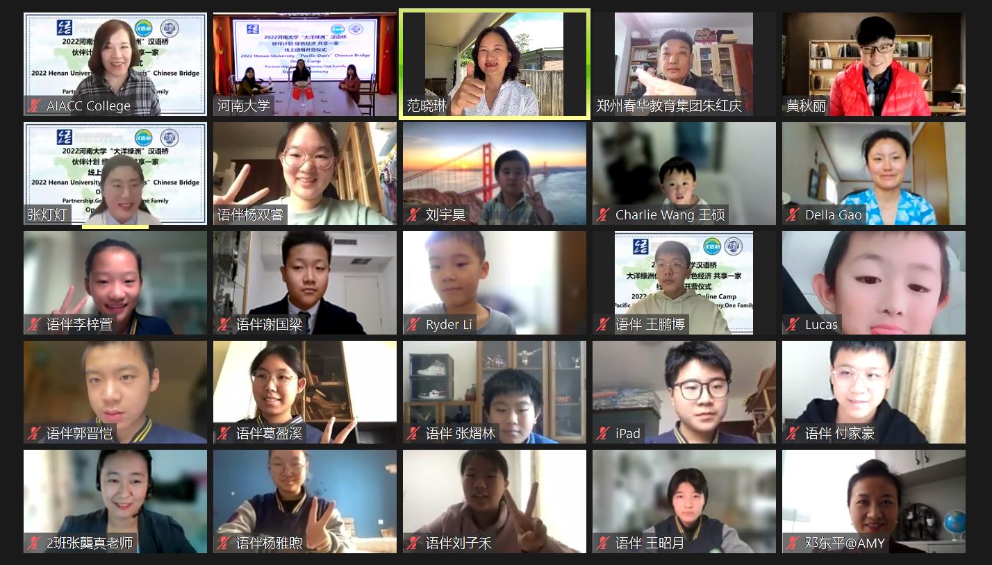 明陞m88官方网站地址国际汉学院刘绣华在开营仪式上,对出席本次开营仪式的各位来宾表示热烈的欢迎。她表示汉语桥是一座语言、文化与友谊之桥,沟通中外,连接你我。本次“汉语桥”线上团组“伙伴计划”旨在带领中澳新伙伴们讲好中国故事,传播中国声音,理解“绿色与共享”理念。欢迎澳新的同学们未来可以实地来到中国,走进河南,留学明陞m88官方网站地址,认识河南,了解真实立体的中国!