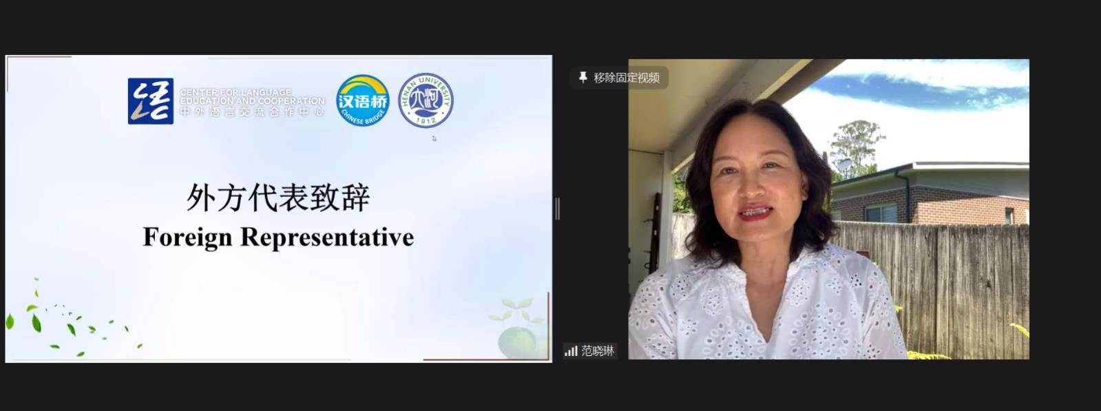 新西兰奥克兰国际艺文学校校长康妮女士对本次活动表示充分的认可与支持。她表示中澳新伙伴们因汉语桥在此结缘,希望在大家共同努力下,以中文为媒,增进国际理解,共创美好未来。
