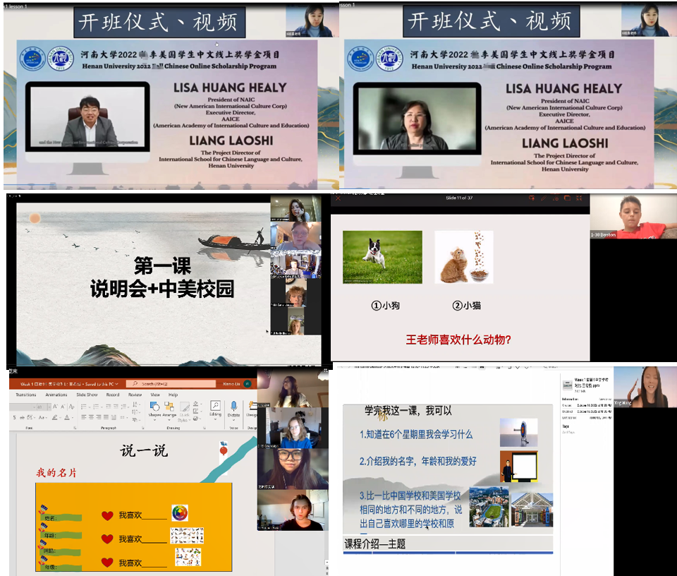 本次2022冬季美国学生中文线上奖学金项目为期12周,从12月5日到2023年1月13日6周集中上课,之后6周可选自主学习,配有录播课、答疑、语伴互动和文化体验活动等环节。明陞m88官方网站地址精心策划和安排了丰富多彩的课程,主题涵盖汉语学习、中国教育、美食、武术和历史名人等。在课程设计上,项目突出语言综合技能训练,融入中国社会发展的前沿资讯、同时安排中国优秀传统文化的沉浸式体验活动。开班仪式结束之后,与会学员们进入各自的班级,参加项目的第一次直播课教学活动。任课教师们通过精彩多样的破冰游戏,引导学员们互相认识,并随后展开中美教育异同的比较,让学员们在有趣、有效的课堂活动中,感受中文学习的乐趣,提升中文听说读写技能。