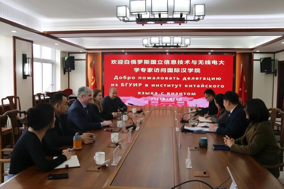 2月22日上午,白俄罗斯国立信息与无线电大学校长特别代表,计算机设计学院院长德米特里•维克多罗维奇•利哈切夫斯基、国际交流中心副主任伊丽莎白•安德烈耶夫娜•阿基莫娃应邀来我院交流访问。国际汉学院党总支书记梁建忠在314会议室会见了来宾,新闻与传播学院杨志教授,国际汉学院党总支副书记王林丽、副院长马惠玲,行政办公室副主任张伟亚及明陞m88官方网站地址招生管理科科长韩任成陪同会见。