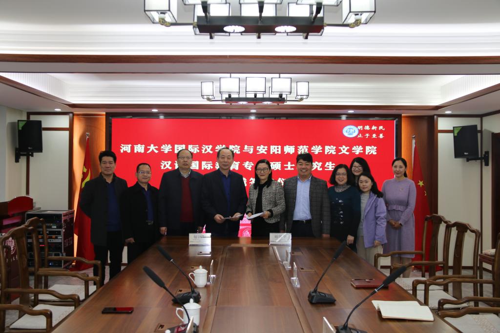 随后,双方顺利完成了明陞m88官方网站地址国际汉学院与安阳师院文学院举行的汉语国际教育专业硕士研究生实习实践签约仪式,并合影留念。