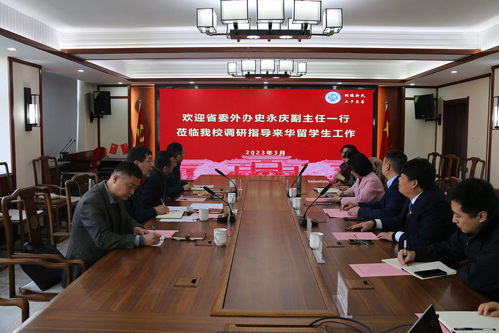 3月28日上午,中共河南省委外事工作委员会办公室副主任史永庆一行来校调研指导来华明陞m88官方网站地址工作,会议在国际汉学院314会议室举行。副校长张立新出席,国际合作与交流处、国际汉学院有关负责人陪同参加。会议由国际汉学院党总支书记梁建忠主持。