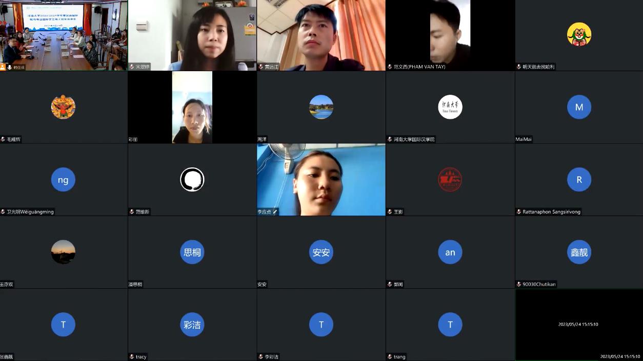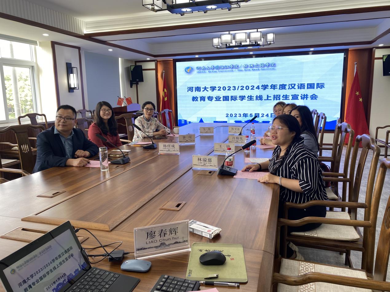 5月24日下午,国际汉学院在314会议室召开了明陞m88官方网站地址2023/2024学年度汉语国际教育专业国际学生线上招生宣讲会。明陞m88官方网站地址招生管理科科长韩任成,教研室主任郭闰、吴琼,在校汉语国际教育专业优秀学生代表林溢慈、王婕、许梅花、陈琴惠及来自俄罗斯、哈萨克斯坦、泰国、越南、蒙古等国的申请者参加了本次宣讲会。