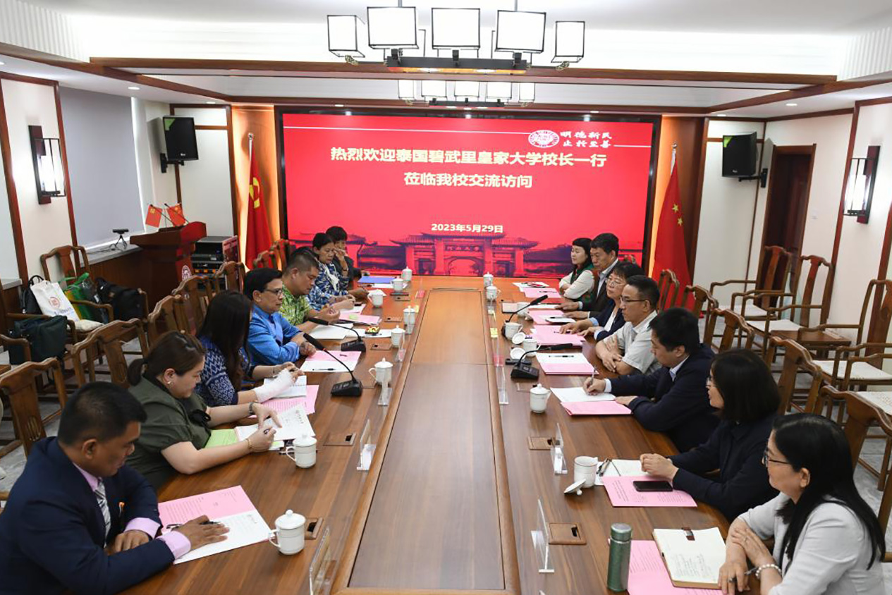 5月29日下午,泰国碧武里皇家大学校长Sanor Klinngam一行7人在河南省教育与汉语国际推广基地项目负责人黄秋丽等人陪同下来校交流访问,副校长傅声雷在国际汉学院314会议室会见了来宾,国际合作与交流处、国际汉学院有关负责人陪同会见。会议由国际汉学院院长李香玲主持。
